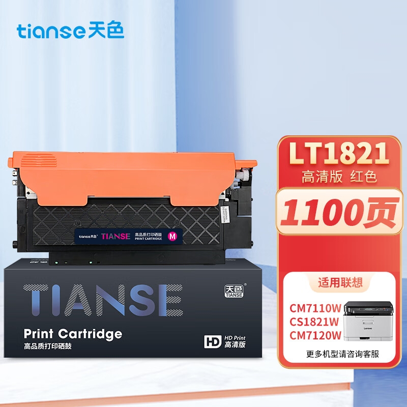 天色LT1821粉盒紅色 易加粉 芯片版(1100頁)適用聯(lián)想cm7120w粉盒CS1831 1831W硒鼓 CS1821 CS1821W cm7110W墨粉 LT1821紅色打印機墨盒l(wèi)enovo
