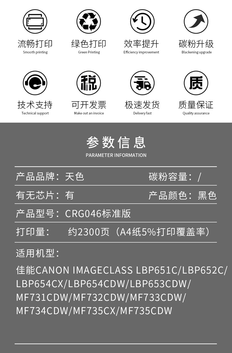 天色CRG046硒鼓 黑色(2300頁(yè))適用佳能MF735Cx硒鼓MF732Cdw LBP654Cx打印機(jī)LBP653Cdw MF735Cdw MF733Cdw墨粉盒 黑色