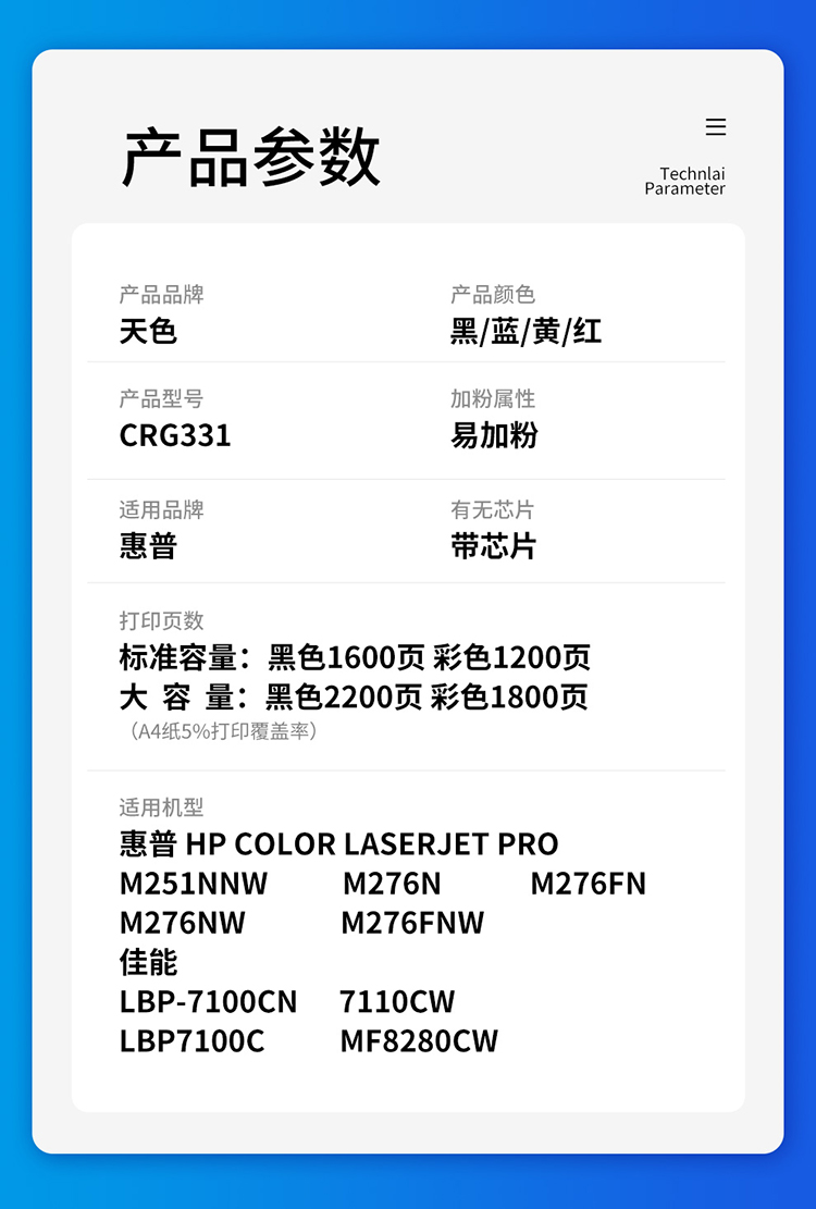 天色CRG331黃色硒鼓(1800頁)適用佳能canon LBP7100Cn 7110Cw MF8280Cw 628Cw 621Cn 624Cw 8210Cn打印機墨粉盒