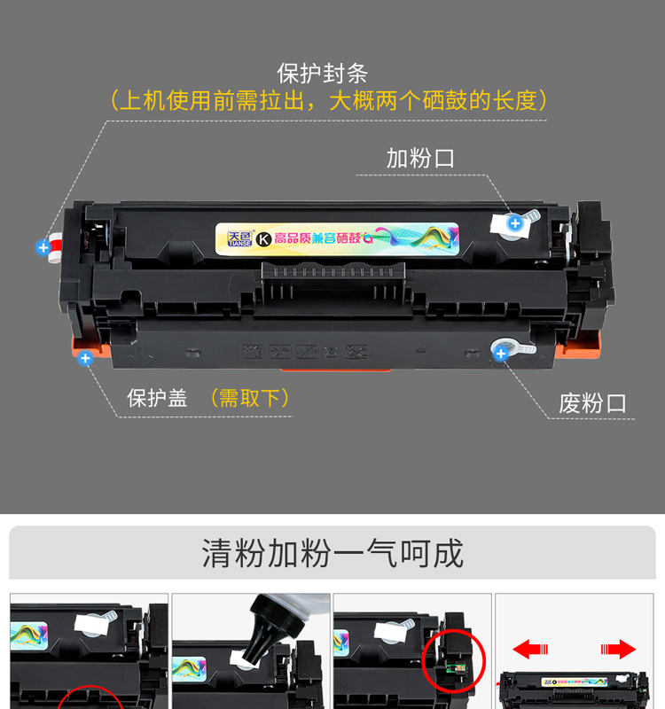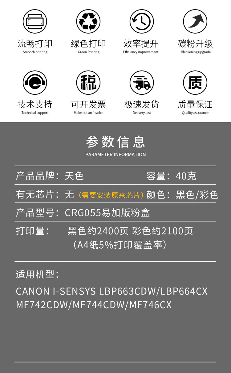 天色CRG055硒鼓 黑色 無芯片(2400頁)適用佳能 LBP663cdw LBP664cx MF742cdw MF744cdw MF746cx打印機(jī)墨粉盒 無芯片