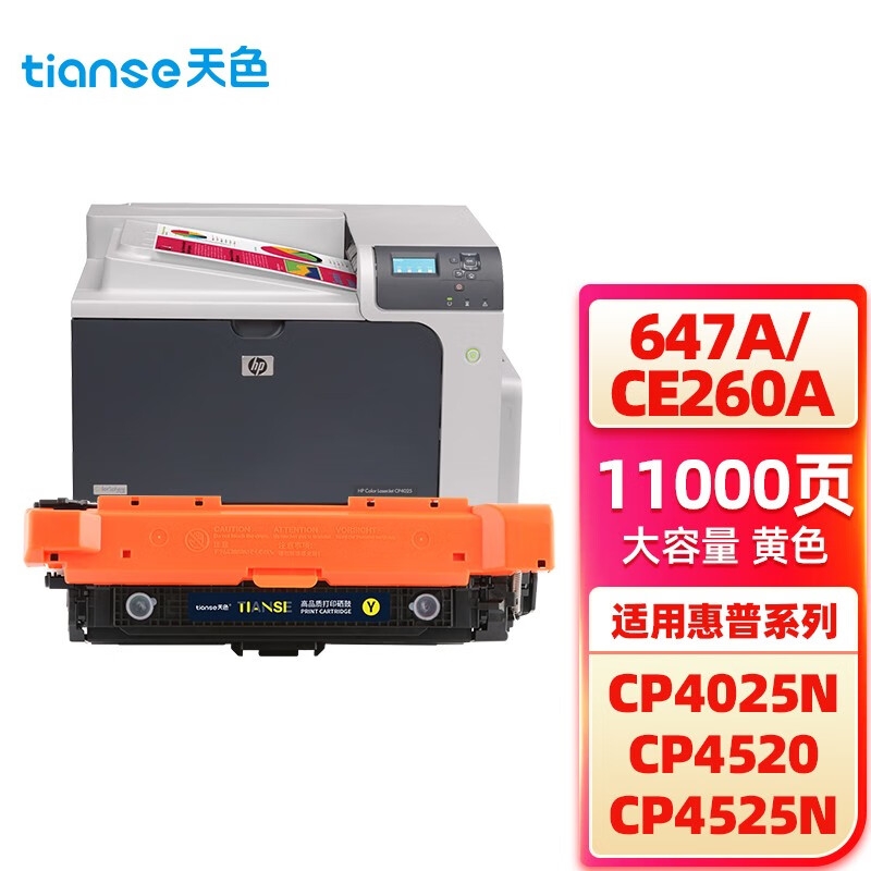 天色CE260A黃色粉盒(11000頁)適用惠普CP4025dn 4025DN 4525DN硒鼓hp 647A 4525XH 大容量648A/CE262A硒鼓 黃色11000頁