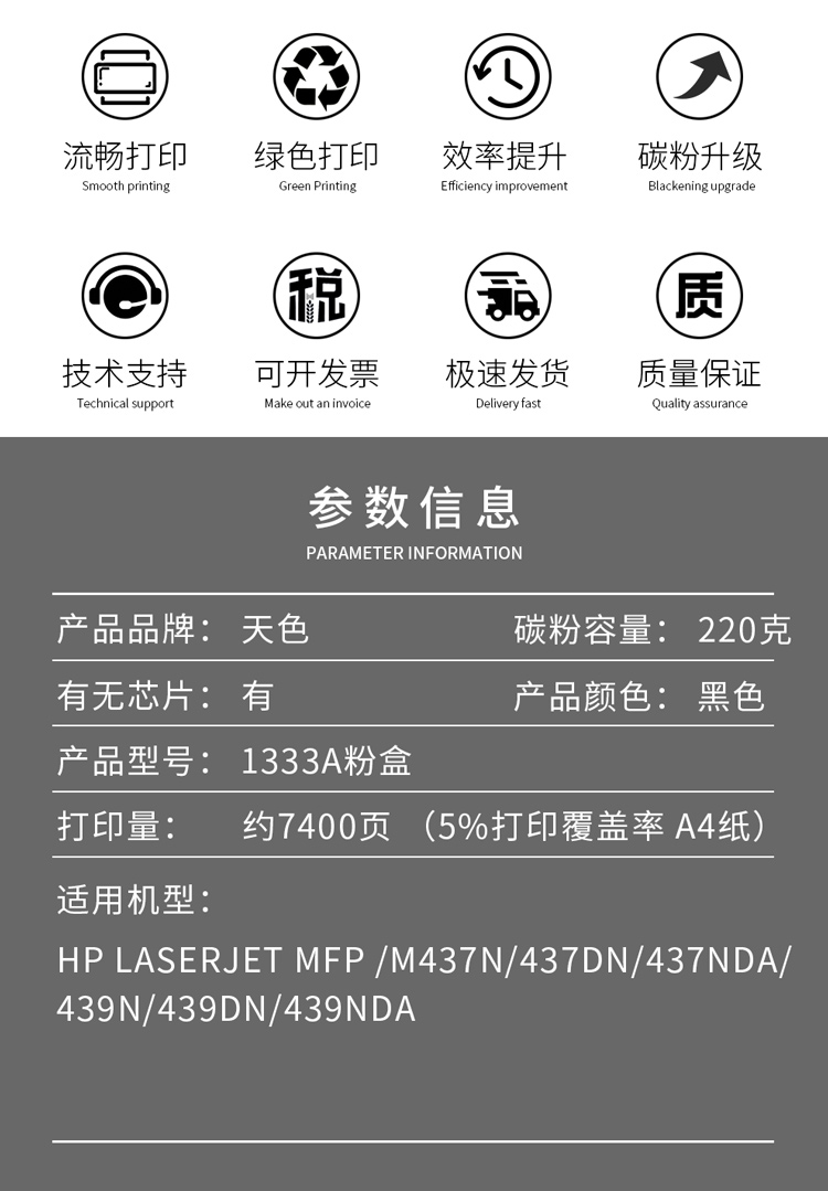 天色(7400頁)W1333A粉盒 標(biāo)準(zhǔn)版適用惠普m437n硒鼓HP LaserJet MFP m437dn/nda m439n/dn/nda打印機(jī)粉盒墨盒