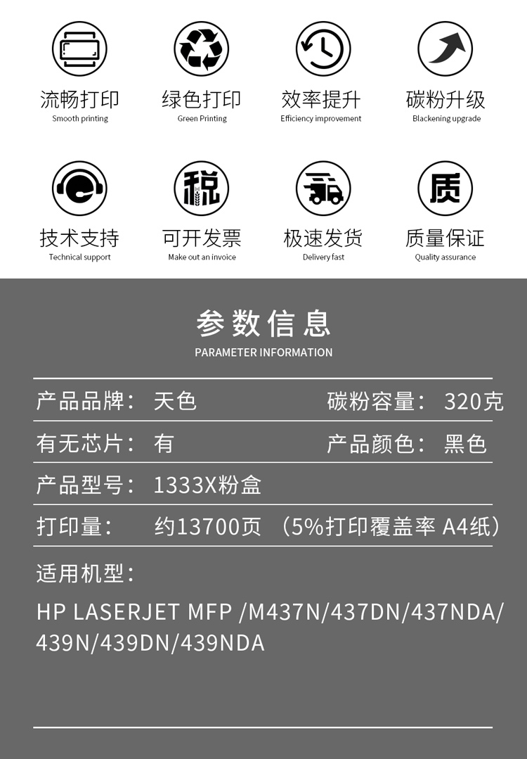 天色(13700頁)W1333X粉盒 大容量適用惠普m437n硒鼓HP LaserJet MFP m437dn/nda m439n/dn/nda打印機粉盒墨盒