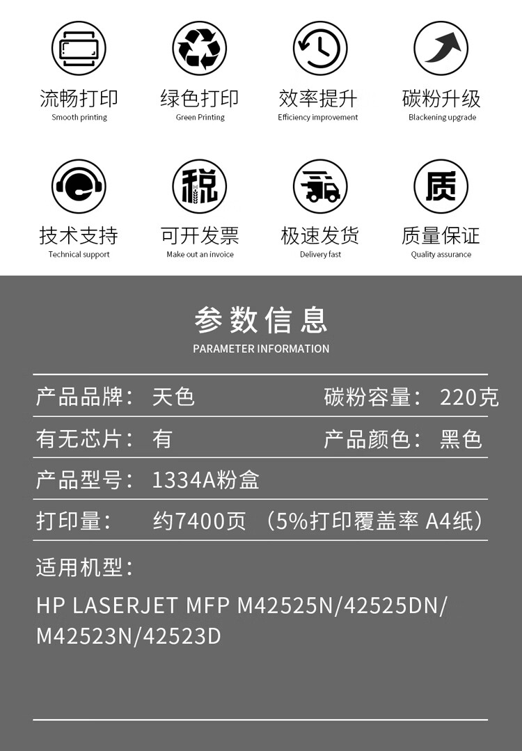 天色(7400頁)w1334A粉盒 標準版適用惠普M42523n硒鼓HPLaserJet M42523dn M42525n M42525dn打印機W1334A粉盒墨盒