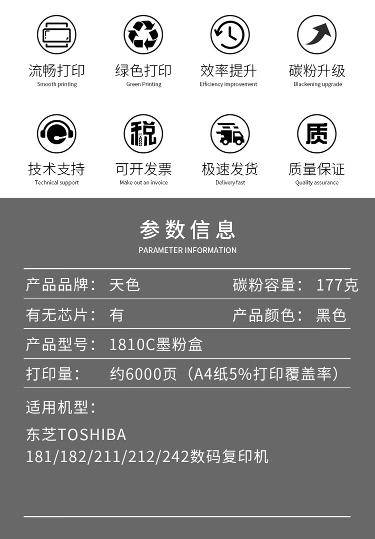 天色(5000頁)T-1810C標(biāo)準(zhǔn)量粉盒適用東芝Toshiba E-studio 181/182墨粉盒211/242/212復(fù)印機(jī)碳粉墨粉打印一體機(jī)硒鼓墨盒粉筒