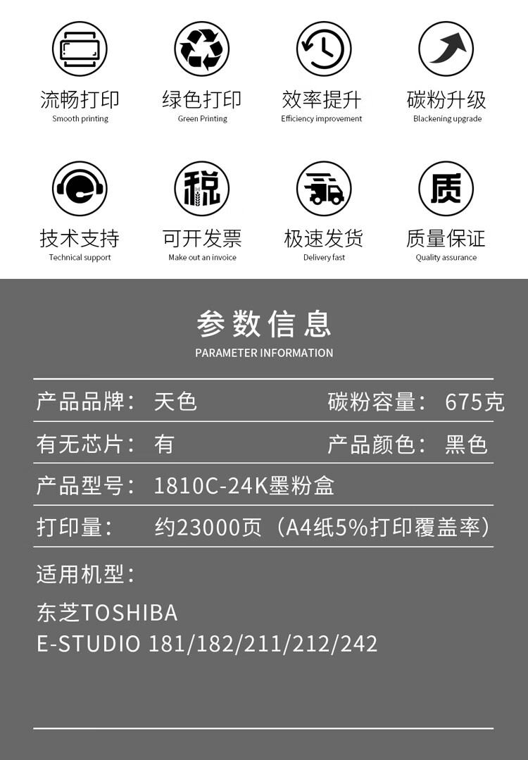 天色(24000頁)T-1810C大容量粉盒適用東芝Toshiba E-studio 181/182墨粉盒211/242/212復(fù)印機碳粉墨粉打印一體機硒鼓墨盒粉筒