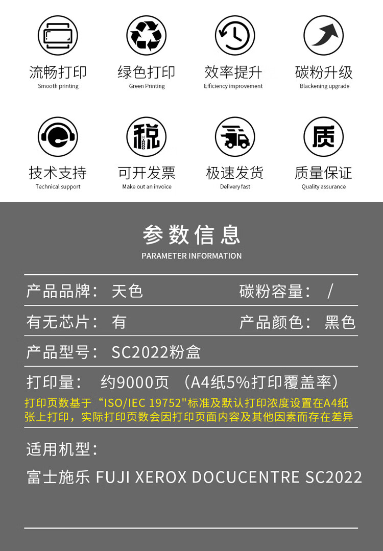 天色(9000頁(yè))SC2022粉盒 黑色適用富士施樂打印機(jī)墨盒fuji xerox施樂SC2022墨盒富士施樂SC2022墨粉盒sc2022cpsda硒鼓