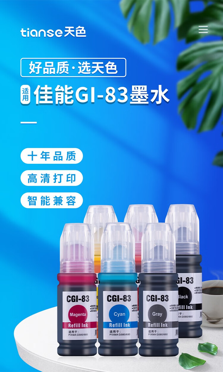 天色(8000頁)GI-83墨水 藍(lán)色適用佳能GI-83墨水G680、G580墨盒打印機(jī)耗材 【8000頁】藍(lán)色
