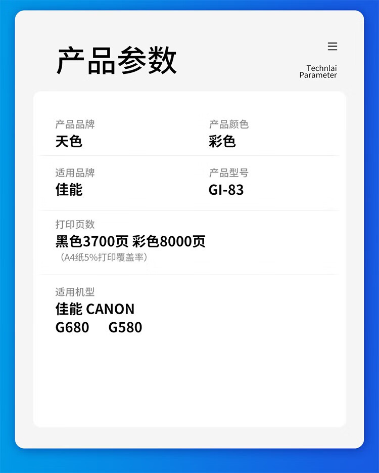 天色(8000頁(yè))GI-83墨水 紅色適用佳能GI-83墨水G680、G580墨盒打印機(jī)耗材 【8000頁(yè)】紅色