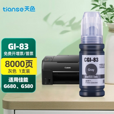 天色(8000頁)GI-83墨水 灰色適用佳能GI-83墨水G680、G580墨盒打印機(jī)耗材 【8000頁】灰色