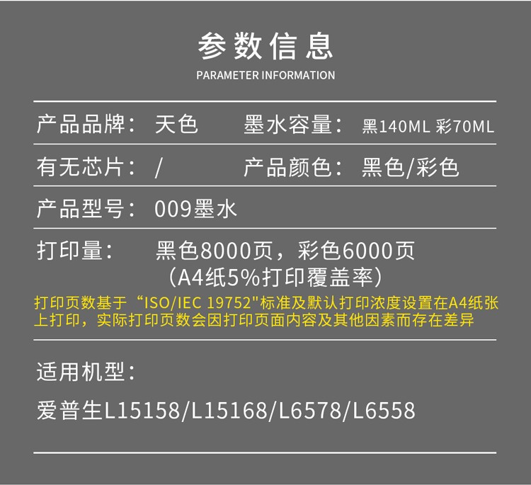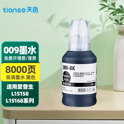 天色(8000頁)009黑色墨水適用愛普生EPSON L15158 L15168 L6578彩色墨倉式噴墨打印機墨水 【8000頁】T06E1 黑色墨水