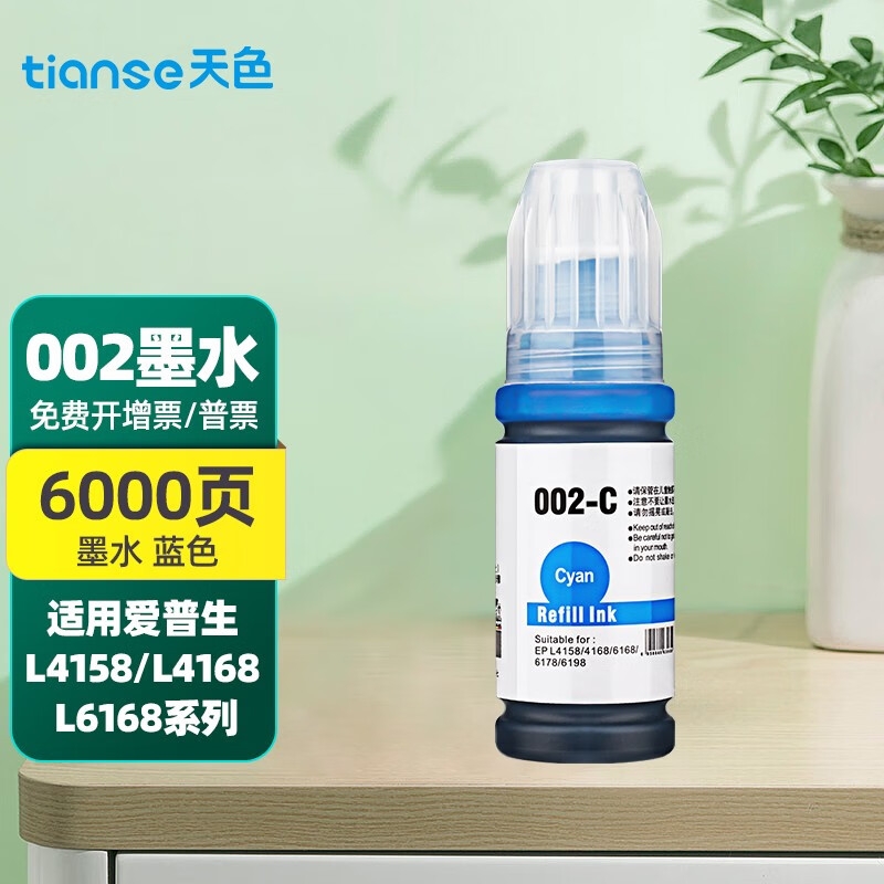 天色(70ml)002墨水 藍(lán)色適用愛普生打印機(jī)墨水002 l4168墨水4166 l6198 epson561墨水4169 【6000頁】T03X2藍(lán)/青色墨水