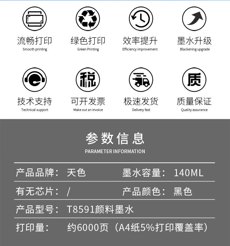 天色T8591墨水 黑色 (適用愛普生M105/M205噴墨打印機(jī)/L605/L655/L1455)