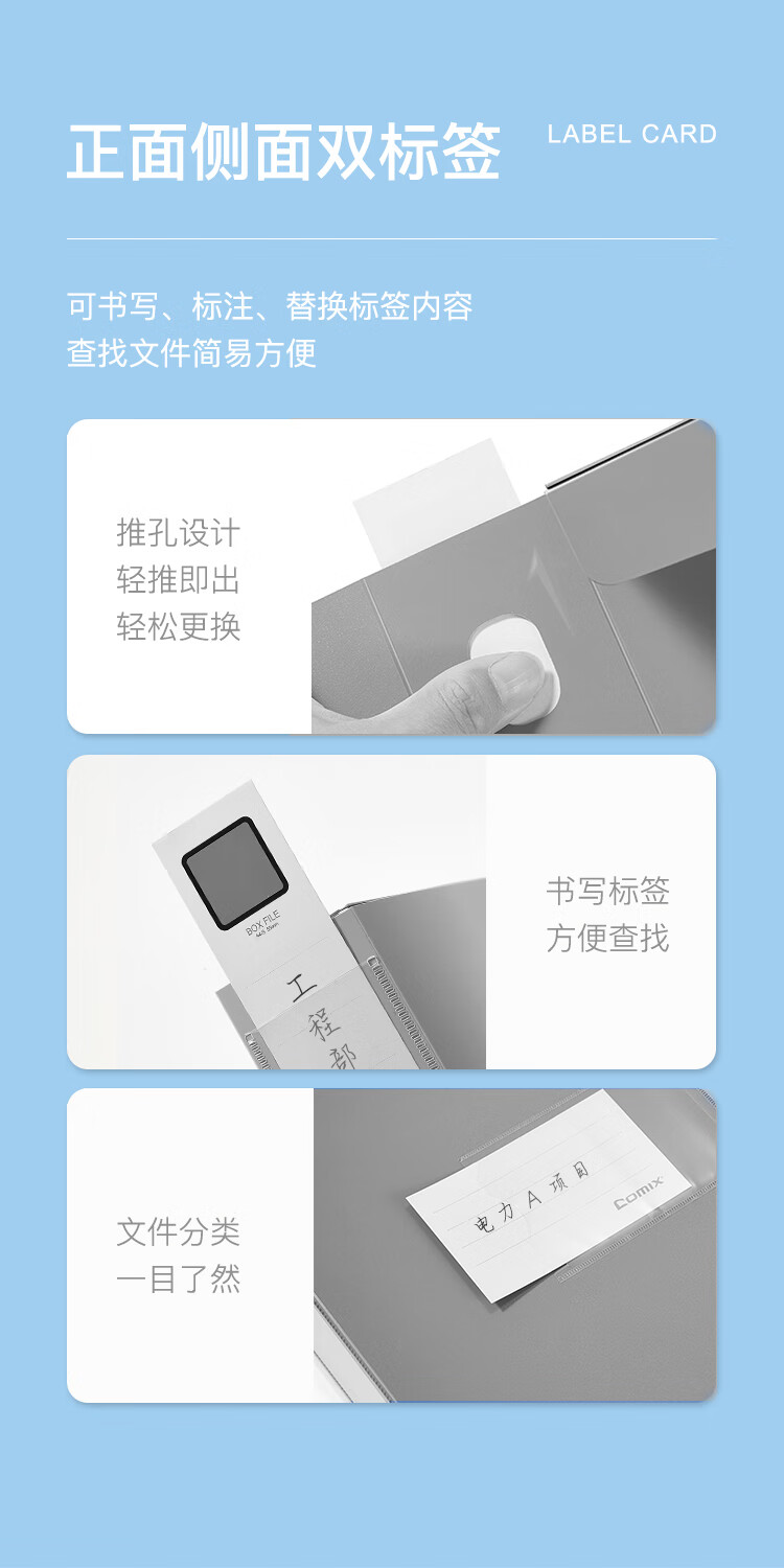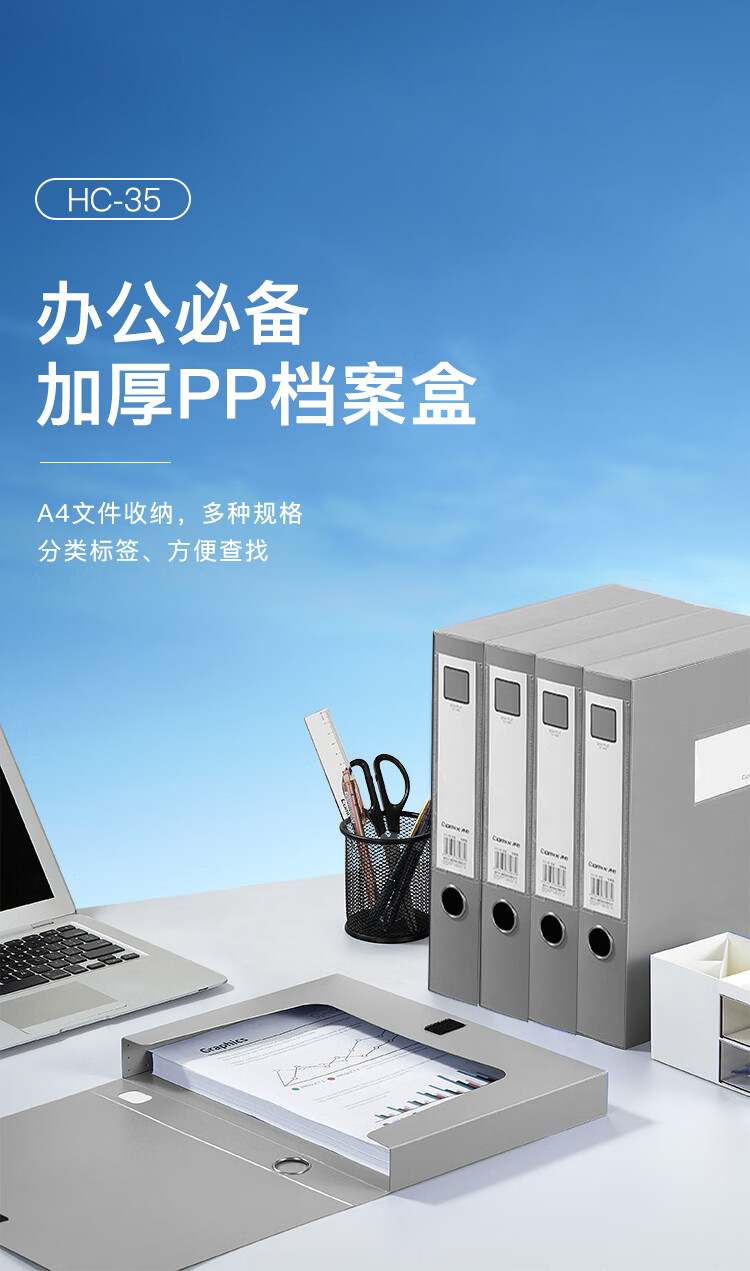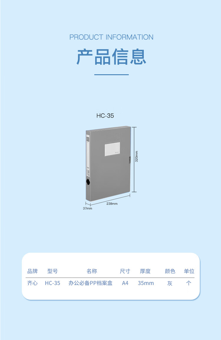 齊心(Comix) HC-35 35mm加厚型粘扣檔案盒文件盒資料盒A4 灰色