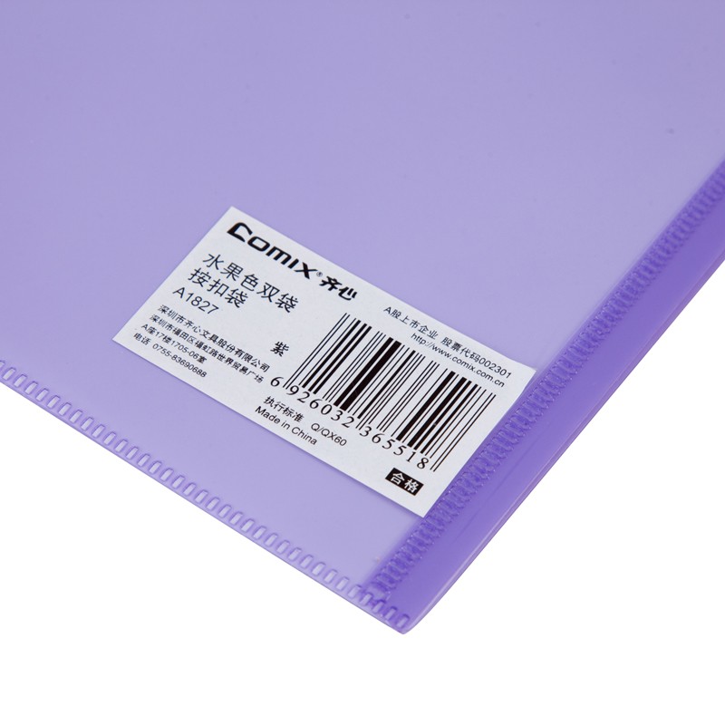 齊心A1827雙色雙袋按扣文件袋A4 紫色
