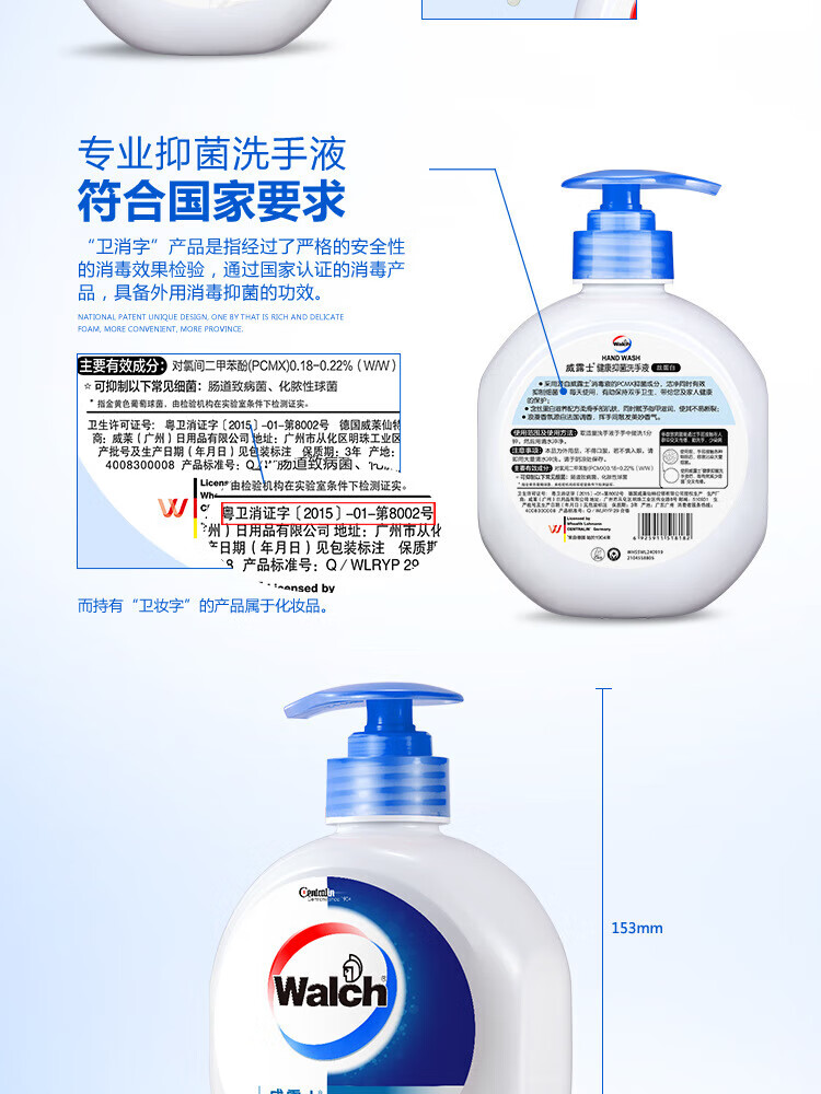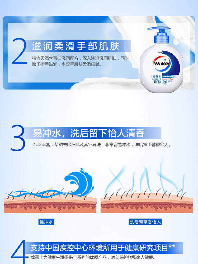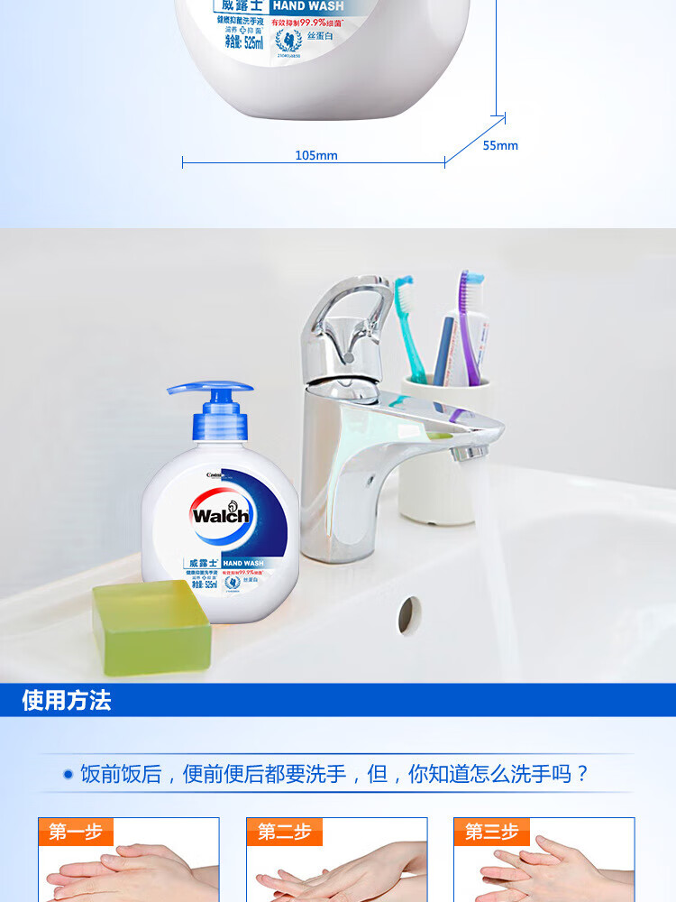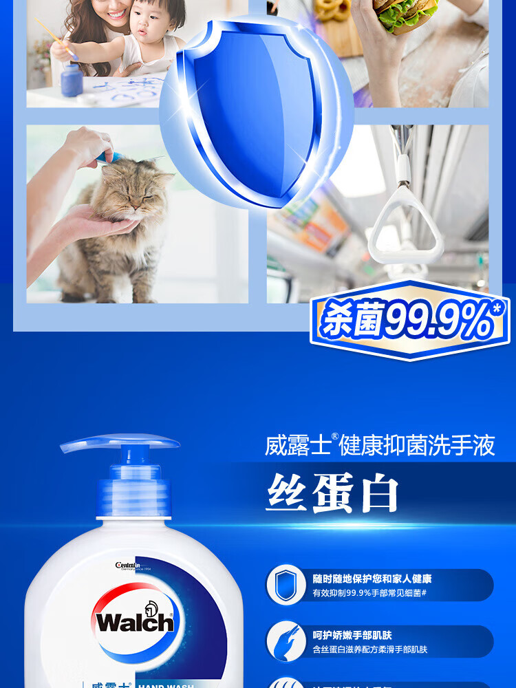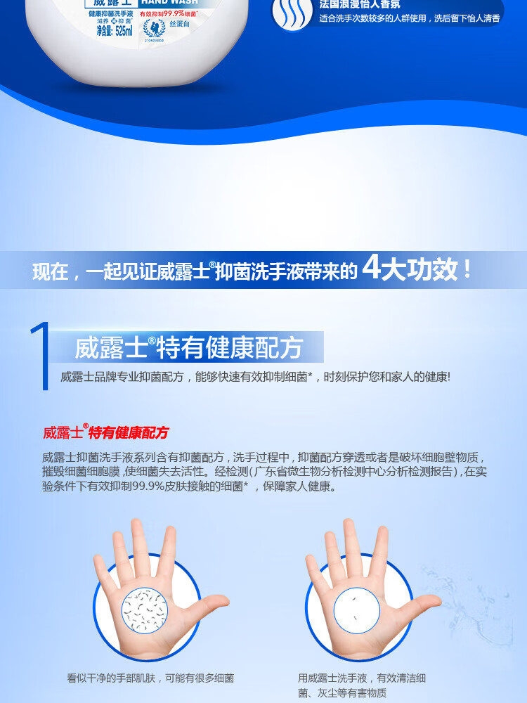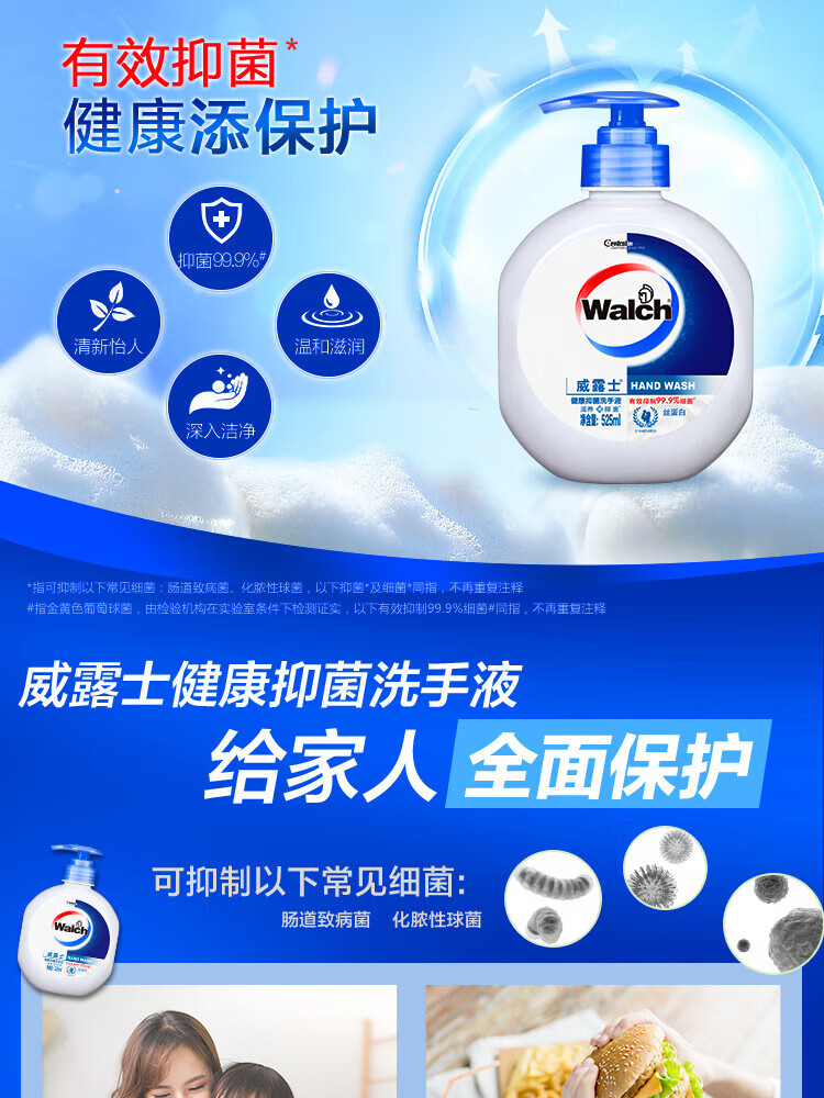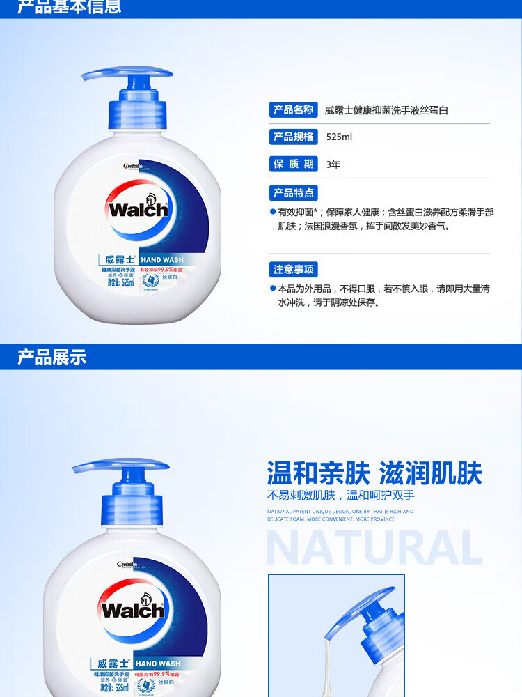 【促銷】威露士(Walch)洗手液(絲蛋白)健康抑菌洗手液525ml 易沖洗成人兒童洗手液