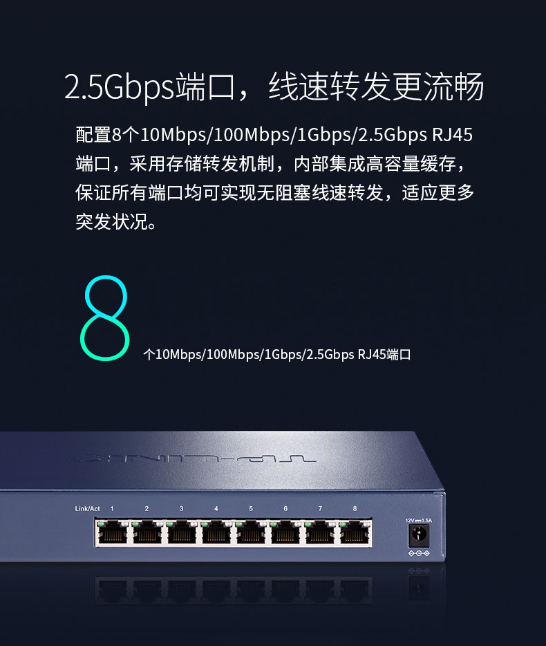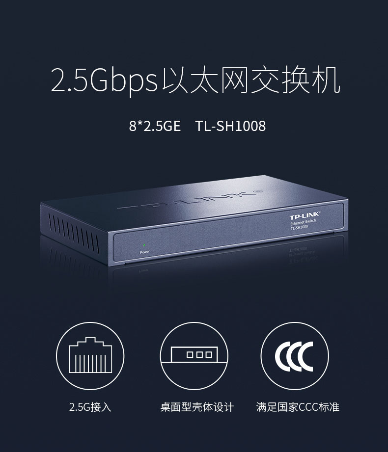 TP-LINK 8口企業(yè)級2.5G交換器千兆家用網(wǎng)絡(luò)分線器 TL-SH1008