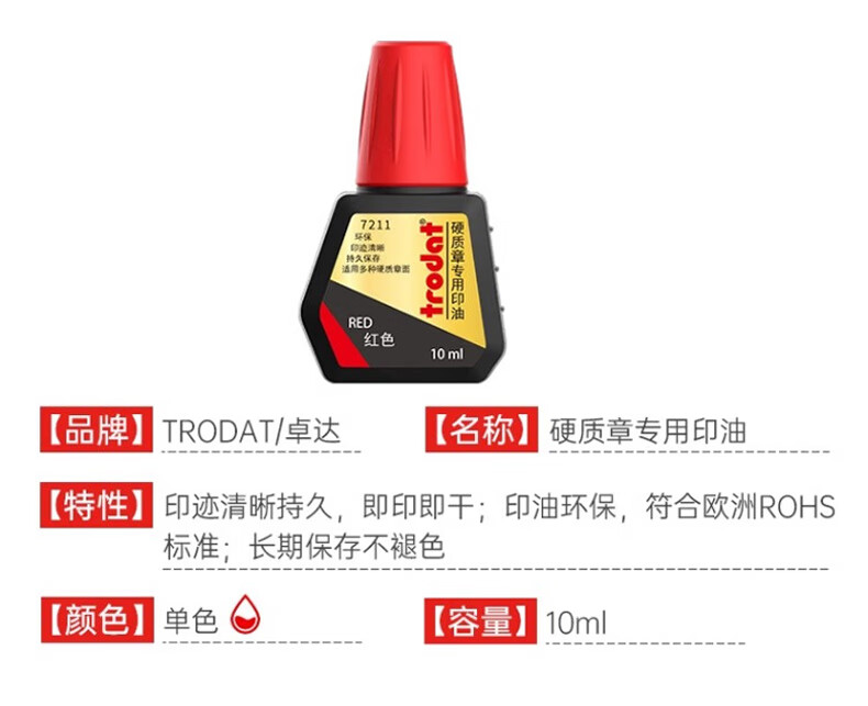 卓達(dá)7211硬質(zhì)章專用印油10ml 紅色
