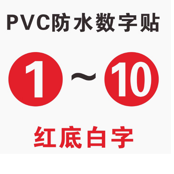 防水pvc數(shù)字貼紙 1-10紅底白字 5*5cm