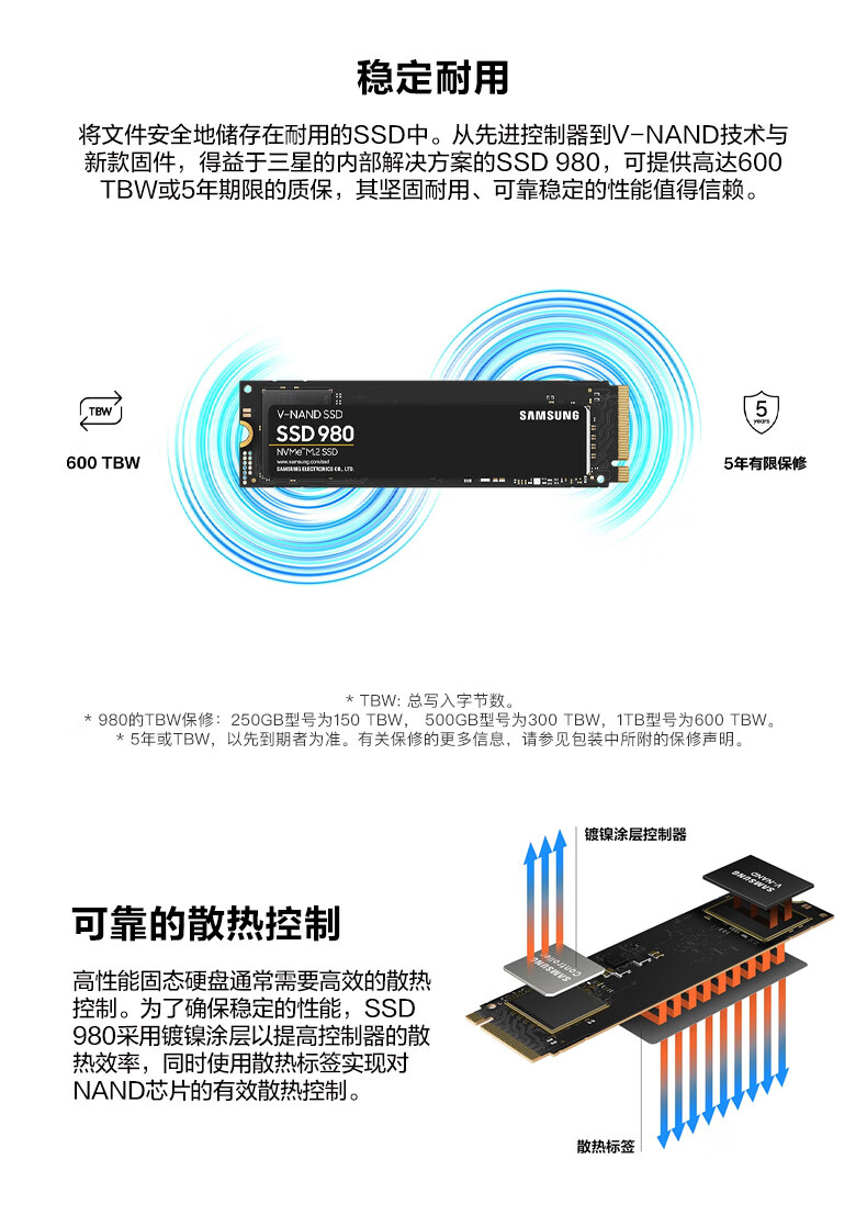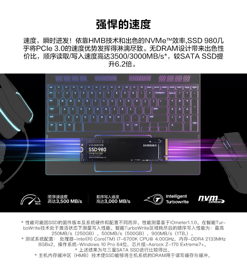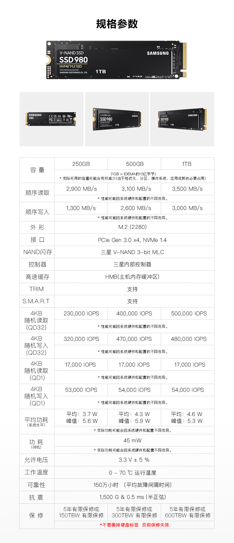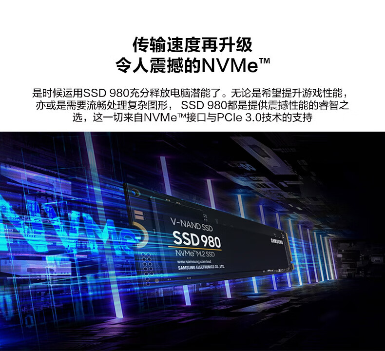 三星(SAMSUNG) 980固態(tài)硬盤SSD NVMe M.2 適用筆記本臺(tái)式機(jī)PCIe3.0x4 980 1T