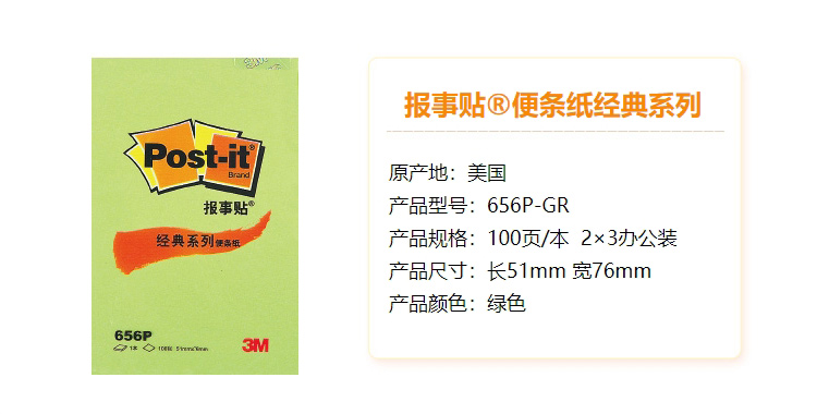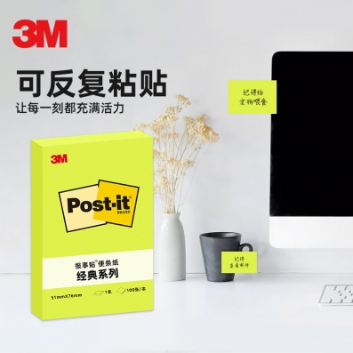 【清倉】3M 656 經(jīng)典系列便利貼 熒光綠色 51*76mm