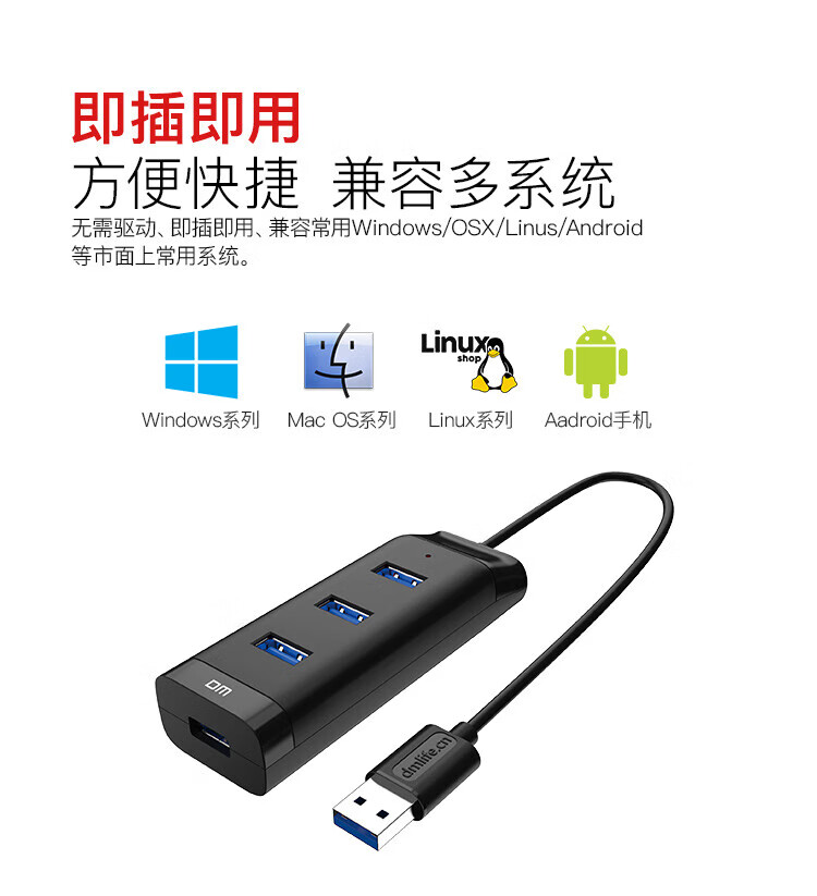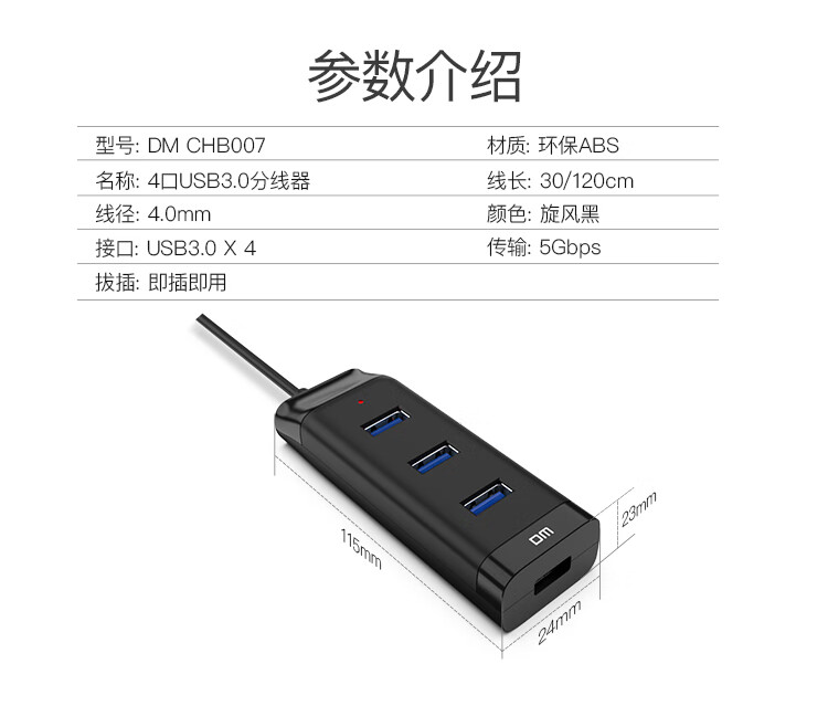 大邁CHB007四口USB3.0集線(xiàn)器1.2米