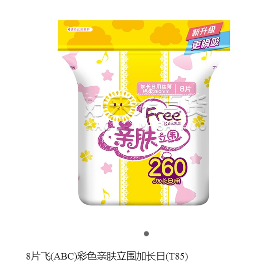 8片飛(ABC)彩色親膚立圍加長日用絲薄棉柔260mm(T85)衛(wèi)生巾