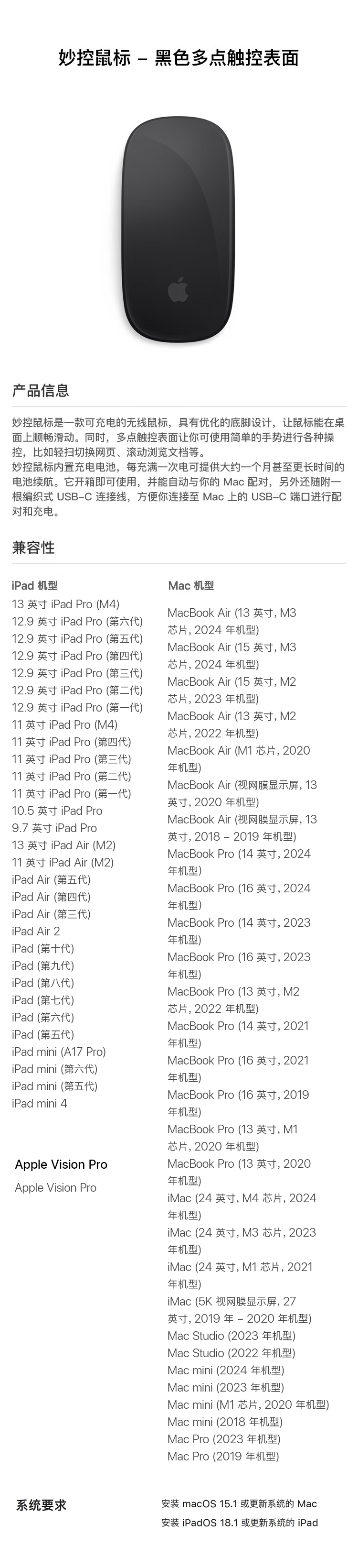 蘋果藍(lán)牙無線鼠標(biāo)(USB-C端口)黑色