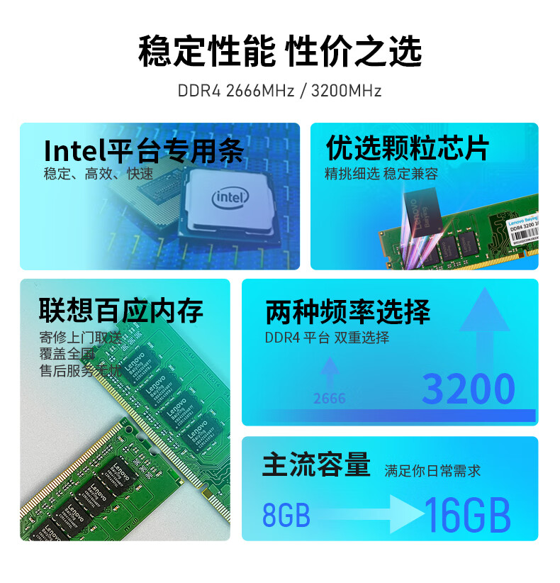 聯(lián)想 DDR4 3200臺(tái)式16GB 內(nèi)存條