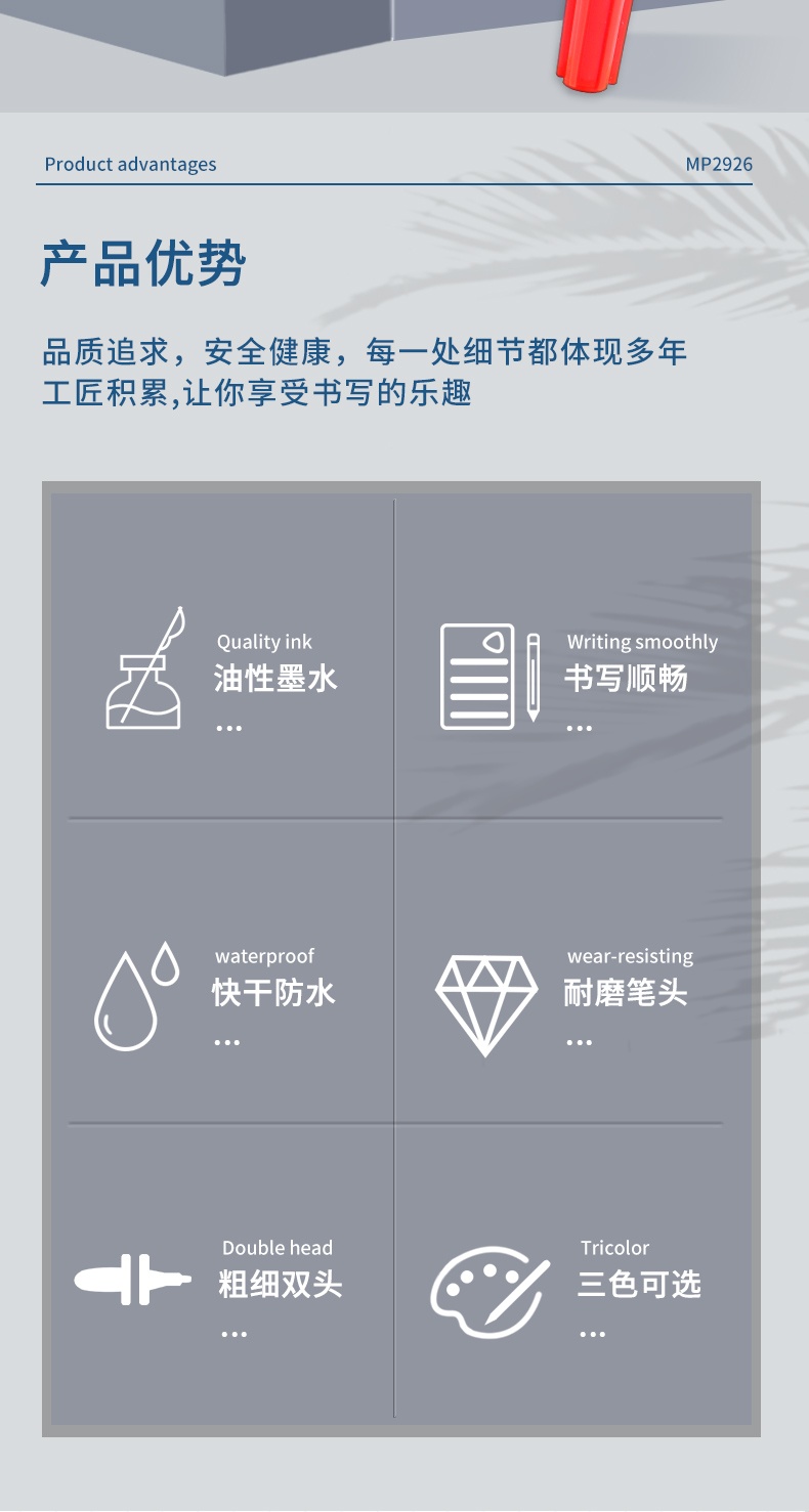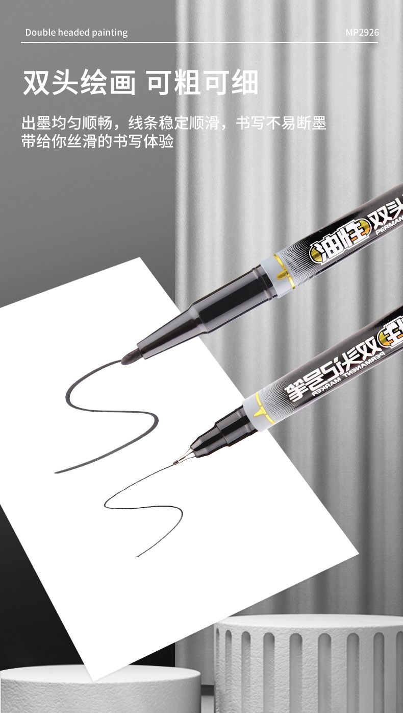 寶克MP2926小雙頭記號(hào)筆 (黑色) 12支/盒