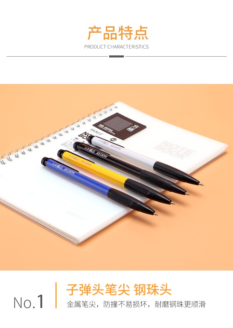 寶克(BAOKE)B71 按動圓珠筆中油筆原子筆軟膠握手 筆桿顏色隨機 0.7mm藍色 1支
