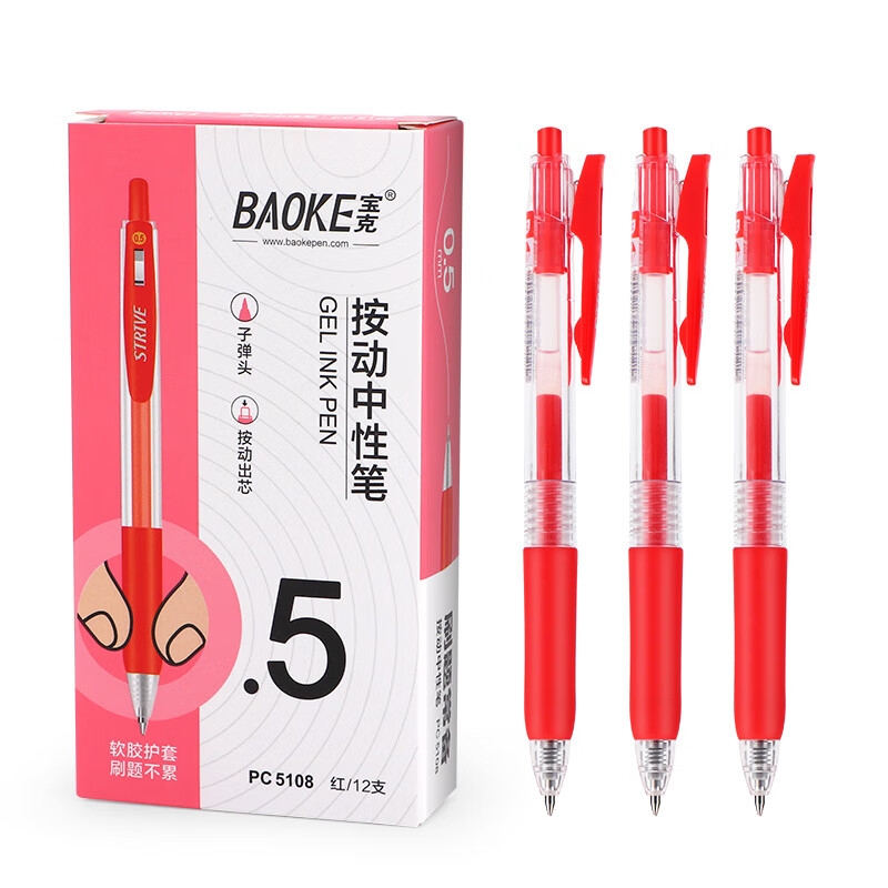 寶克5108按動中性筆0.5mm 紅色