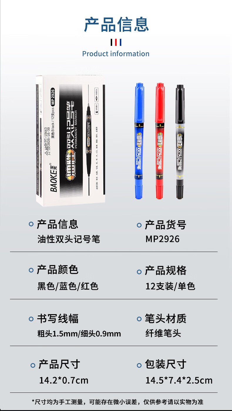 寶克MP2926小雙頭記號(hào)筆 (黑色) 12支/盒