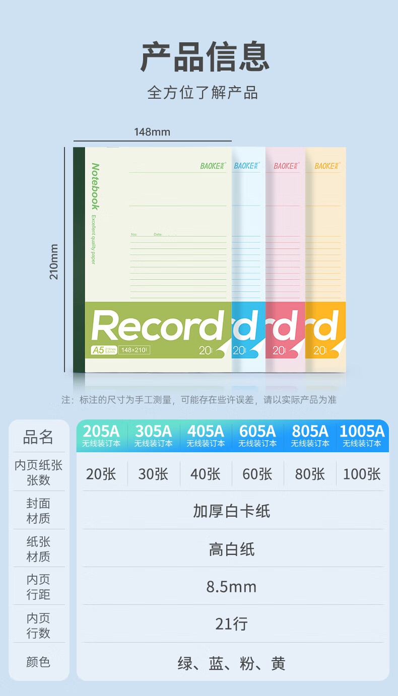 寶克 405A 橫翻膠裝筆記本 A5/40頁(yè)