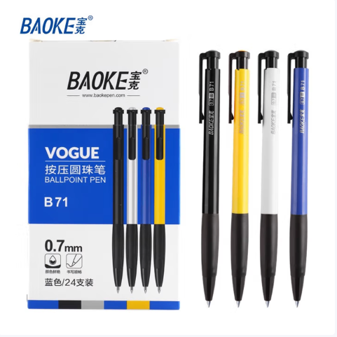 寶克(BAOKE)B71 按動圓珠筆中油筆原子筆軟膠握手 筆桿顏色隨機 0.7mm藍色 1支