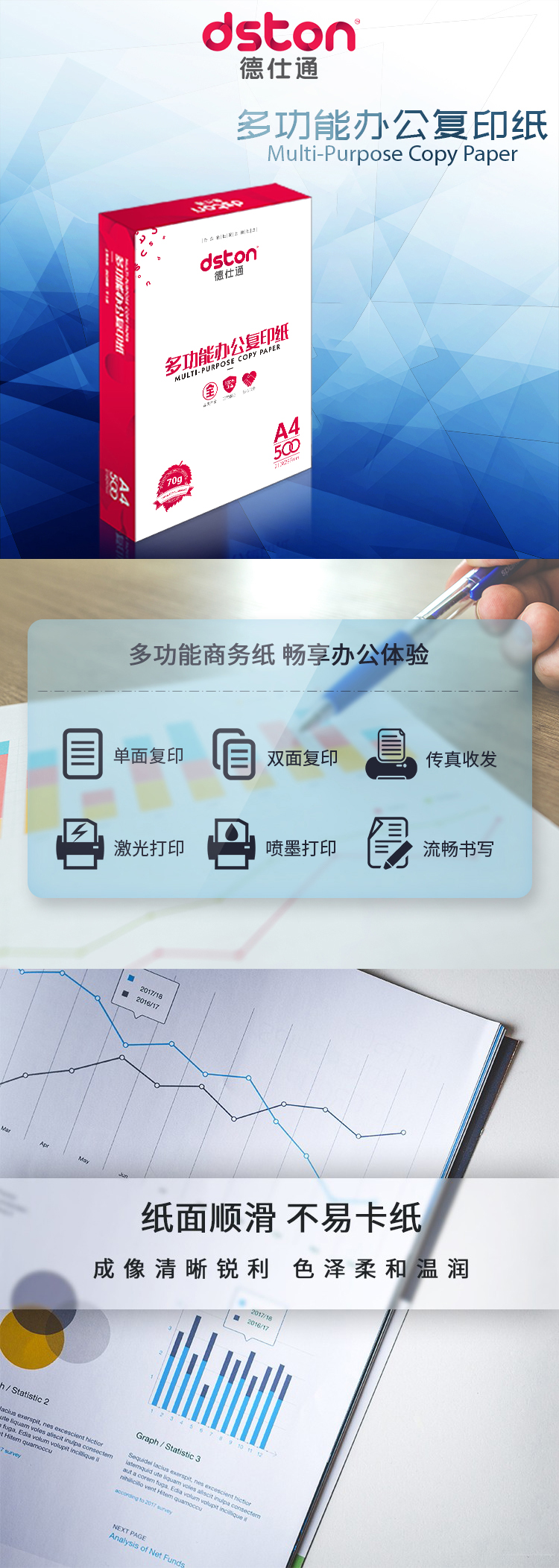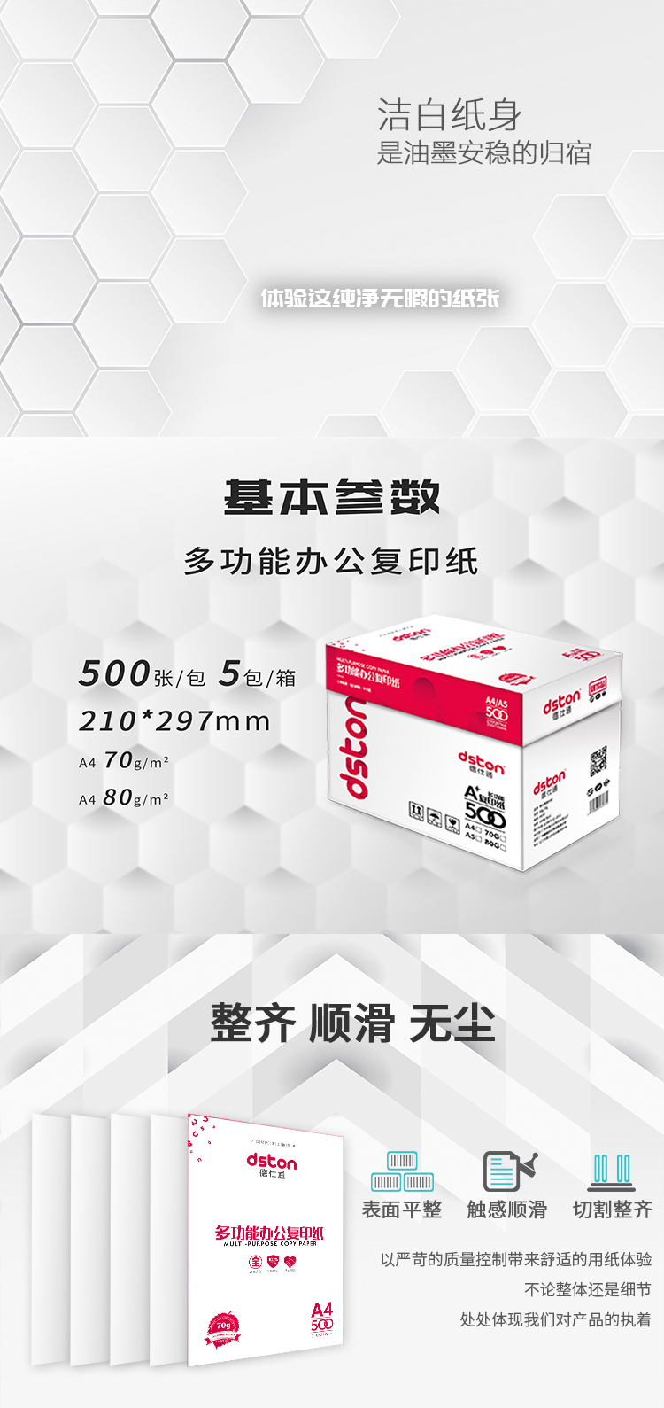 德仕通 5包紅裝A4/70g 復(fù)印紙打印紙 500張/包 白色 1包